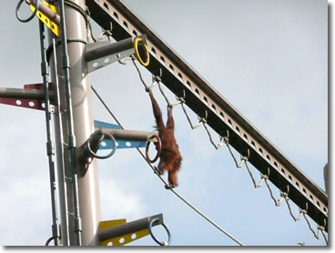 ちょっぴり残念だったけれど最後にオラウータンの綱渡りが見れて感激です!