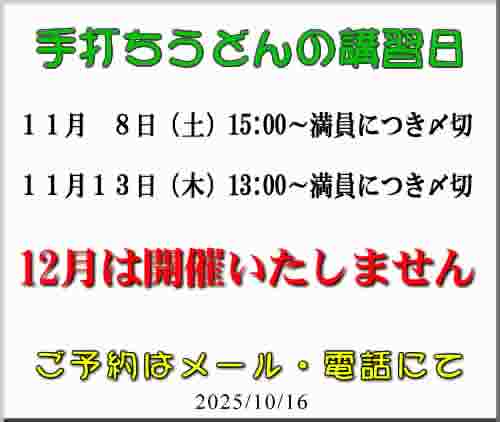 うどん打ち実践10回コース 26,190円(材料費・税込)