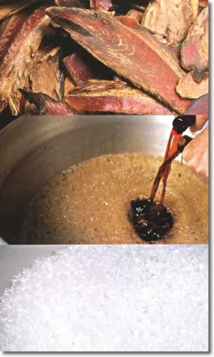砂糖を水で煮溶かしたものを生の醤油に加えて熟成させる