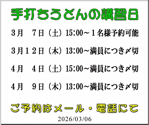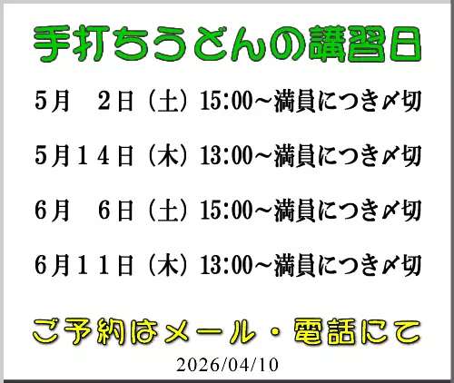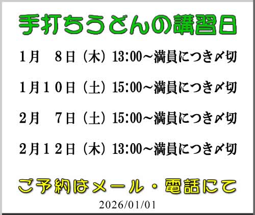 うどん打ち実践10回コース 26,190円(材料費・税込)