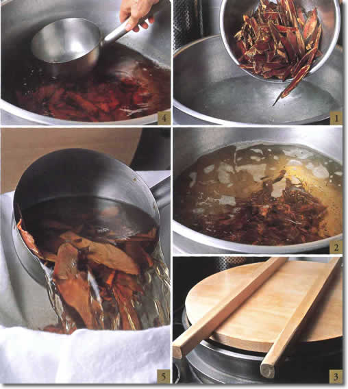 関東風のそば屋でのだしの取り方は 関西風あるいは料理屋風のだしの「ひく」という感じではなく 長時間だしを「煮つめて取る」という方法が一般的です